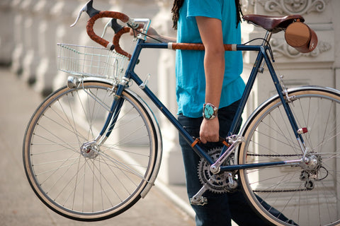 The original bicycle frame handle launched by Walnut Studiolo on Kickstarter. The frame handle (a.k.a. “The Little Lifter”!)  is a comfortable, stylish, sturdy, and easy-to-use leather handle for carrying your bicycle, whether it's up the stairs, across the tracks, or onto the metro.